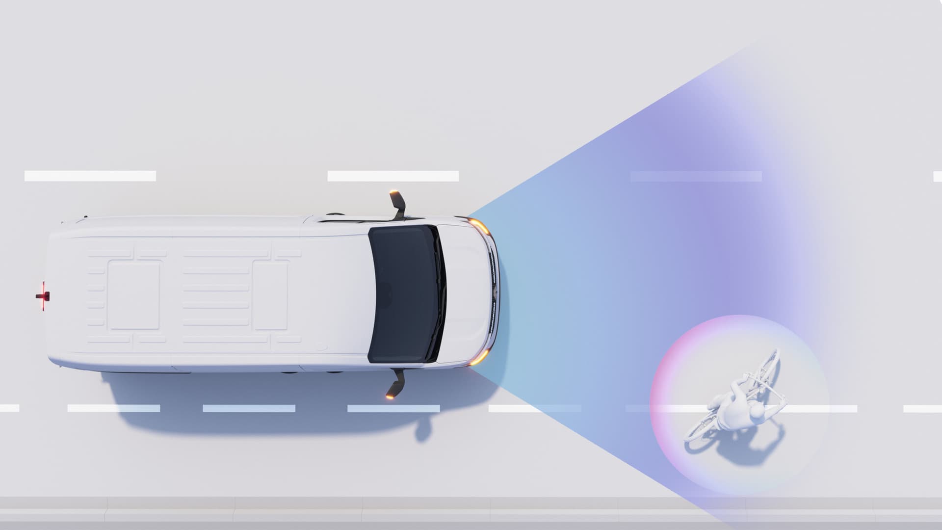 Om fører har en syklist i blindsonen vil et lyssignal i sidespeilet varsle føreren. Om varebilen oppdager en syklist på passasjersiden, vil en sensor aktivere lyd- og lyssignal.